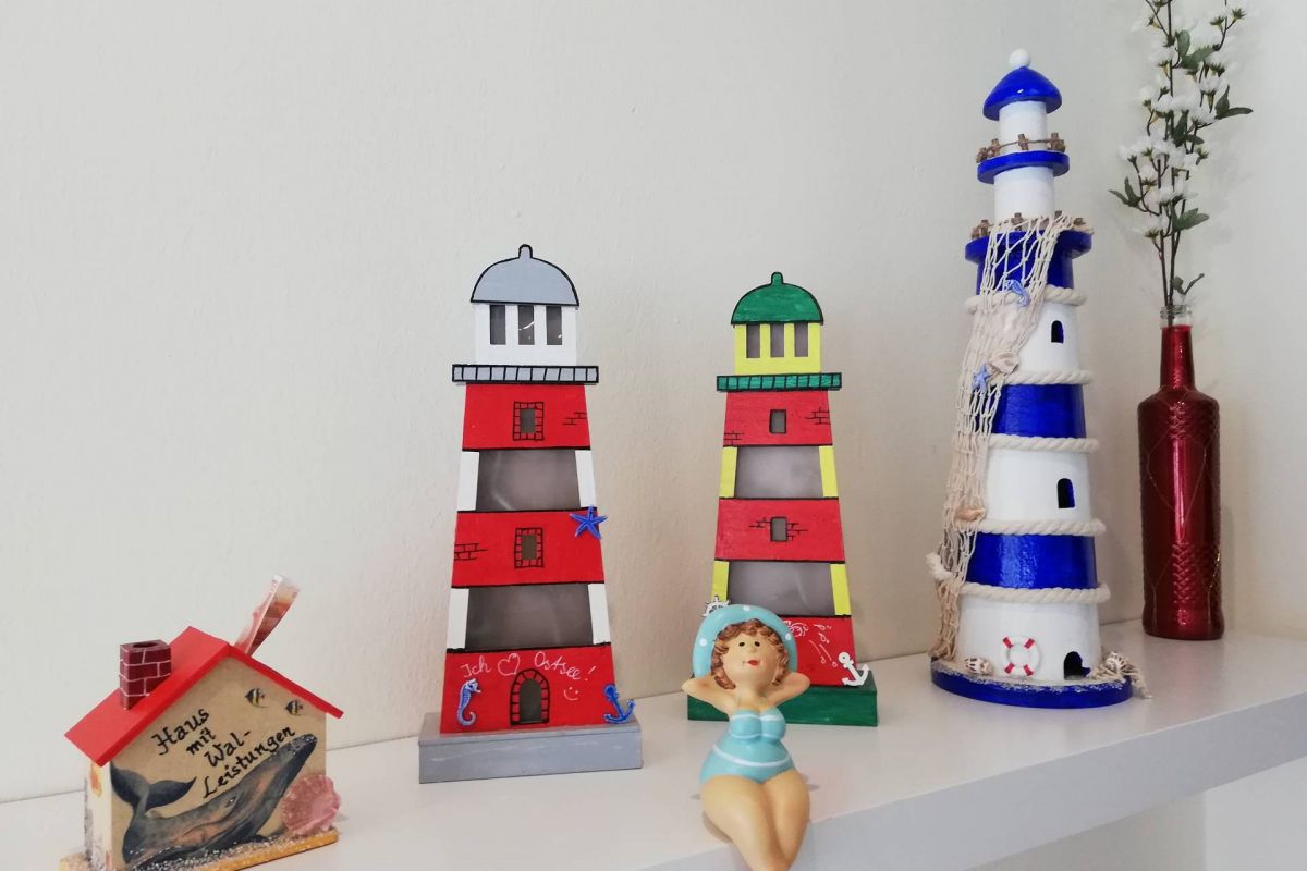 Was so nah der Ostseeküste nicht fehlen darf, sind natürlich Leuchttürme. Einen tollen Blickfang bildet der 50 cm hohe Leuchtturm aus Holz. Er weckt sofort Urlaubserinnerungen an Sommer, Sonne, Sand und Mee(h)r. Er ist sehr liebevoll mit vielen maritimen Details gestaltet.